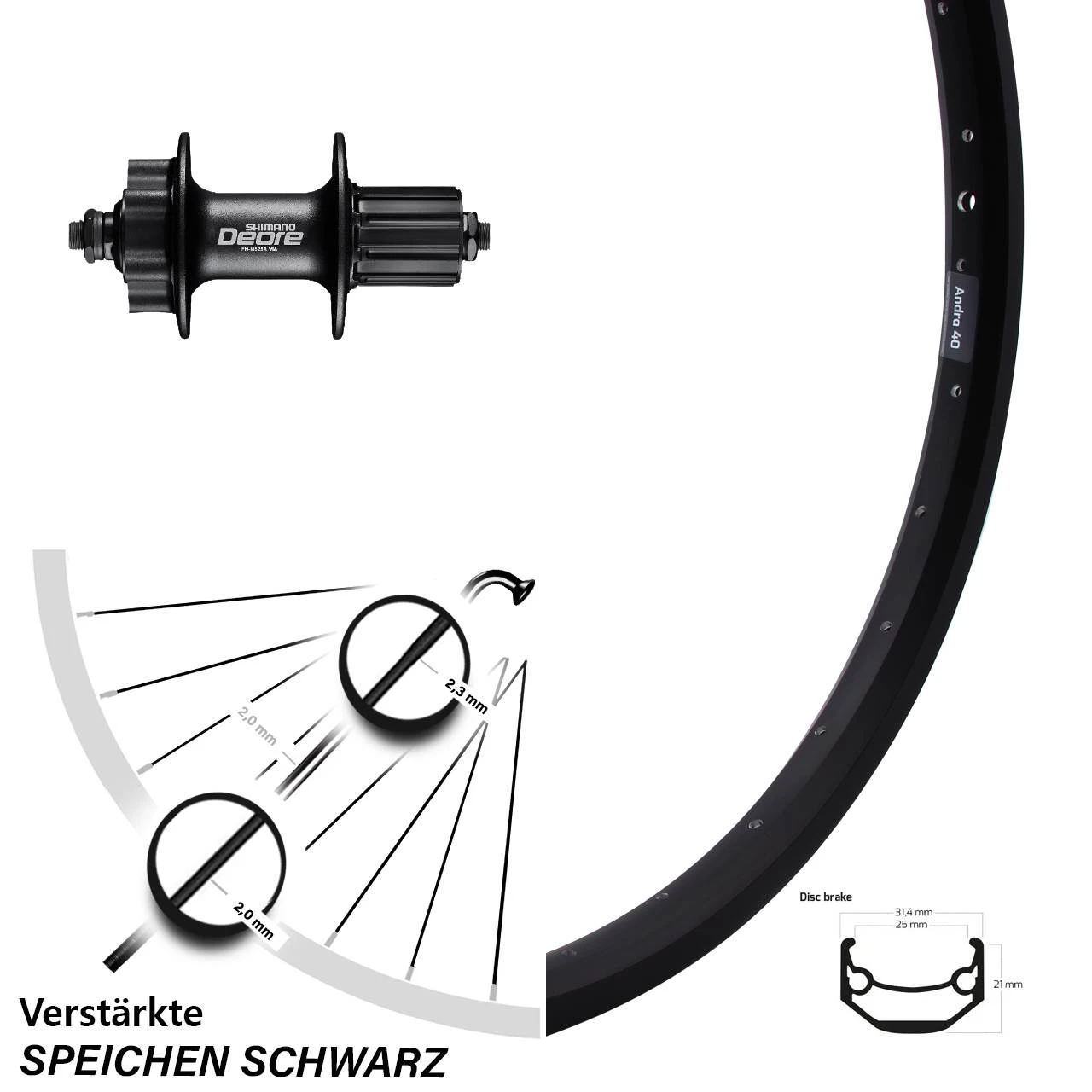 20 Zoll Hinteres Rad Ryde Andra 40 Disc mit Shimano Deore FH-M525A 135 mm Schnellspanner mit verstärkten Speichen