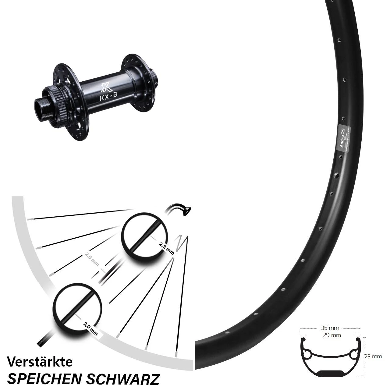 Technische Daten Vorderrad Ryde Andra 29 Disc schwarz mit Nabe KX-B Boost Vorderradnabe 15/110 Centerlock