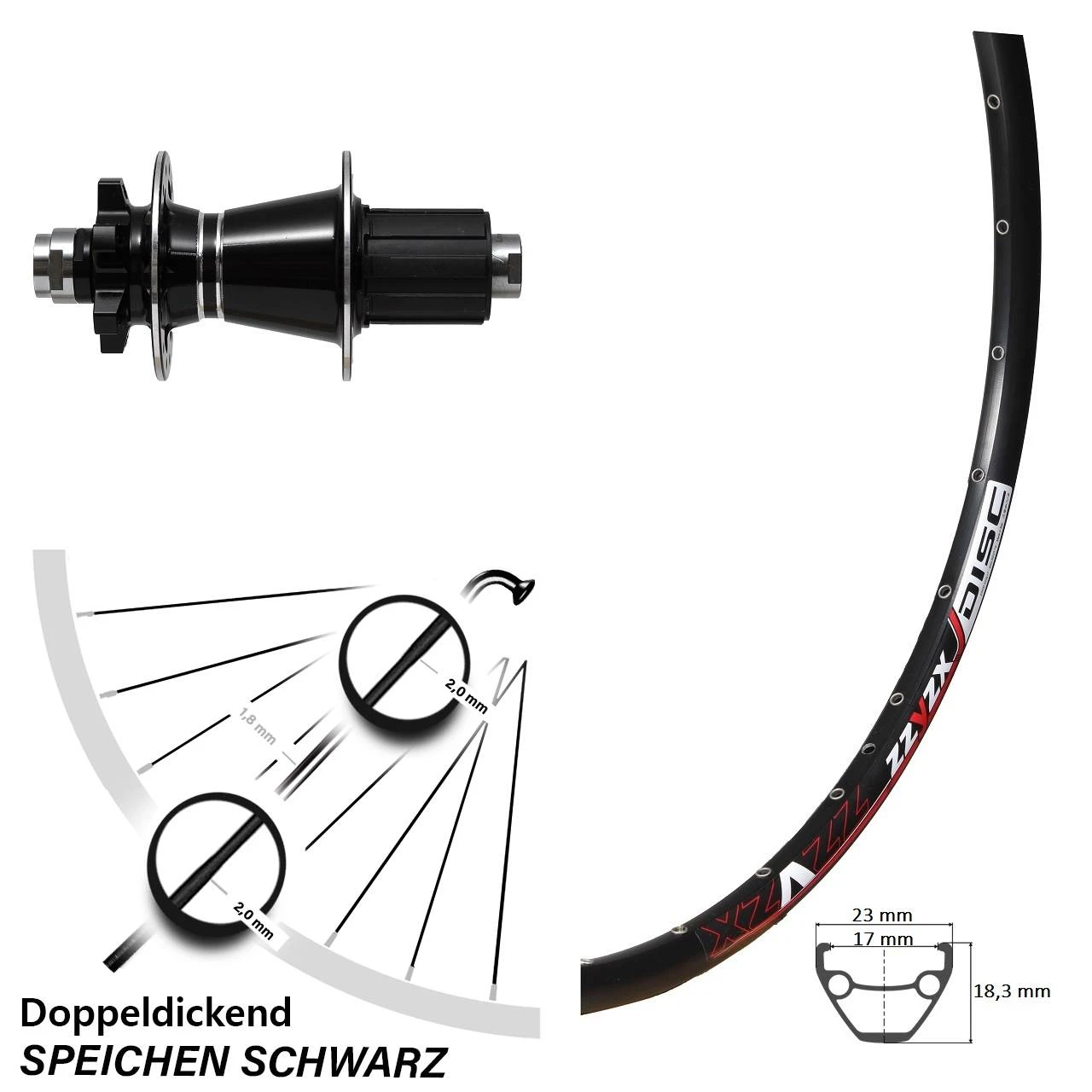 - Felge Maße: Höhe 18,3 mm / Breite 23 mm