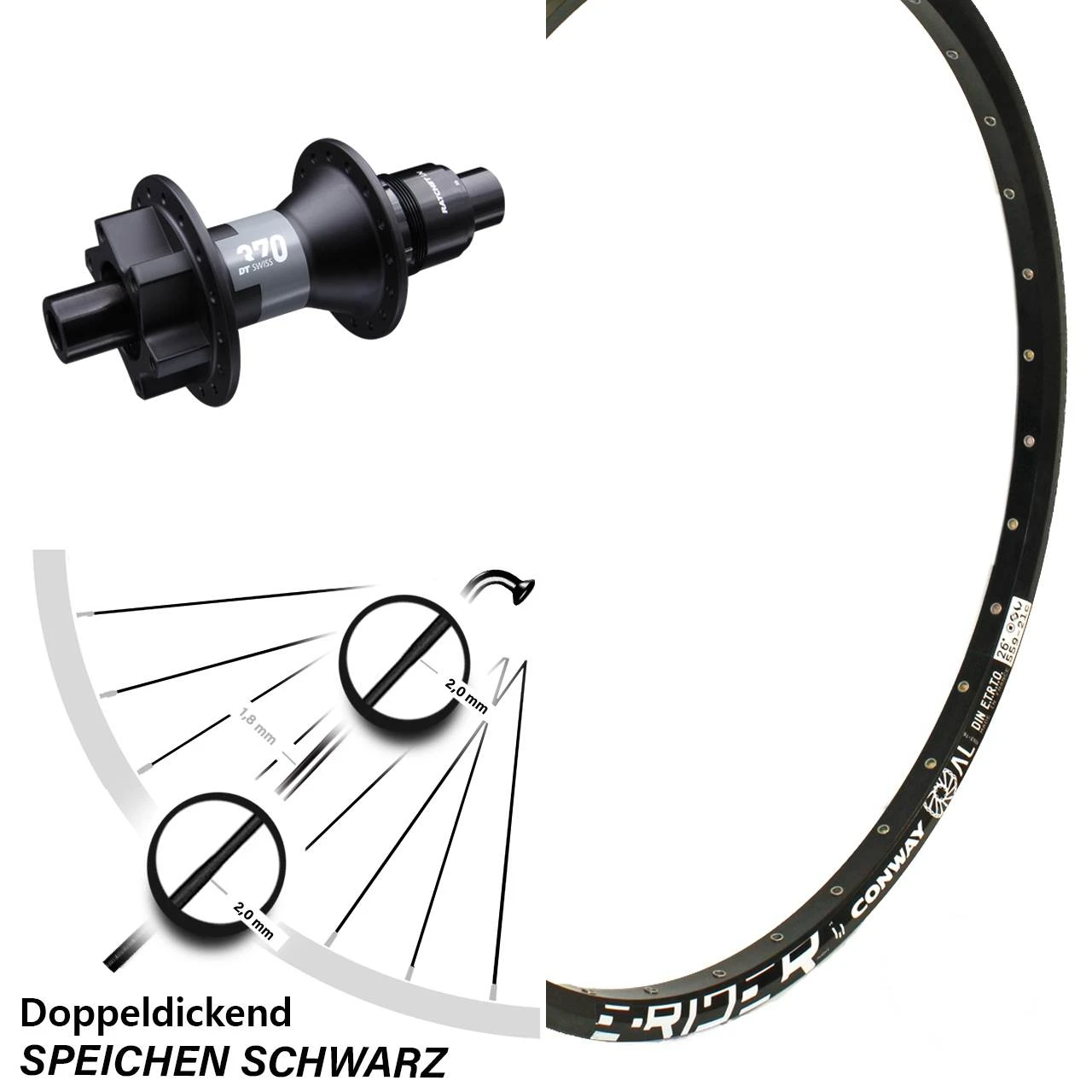 - Nabe: DT Swiss 370 Nabe 12/142 mm 6-loch Sram XD schwarz