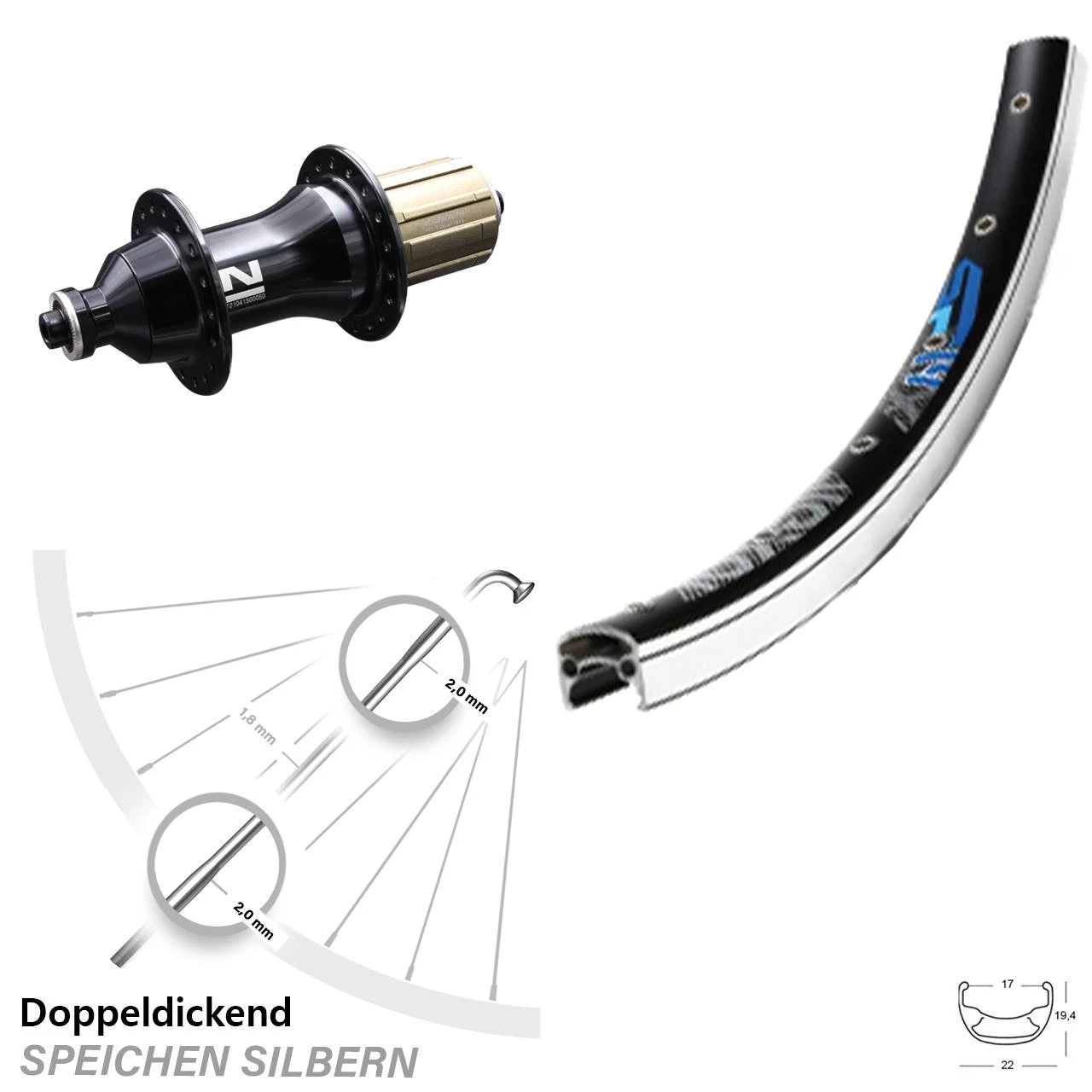 Technische Daten Hinterrad Exal SP 19 schwarz und Nabe Novatec F162SB 5/135 schwarz
