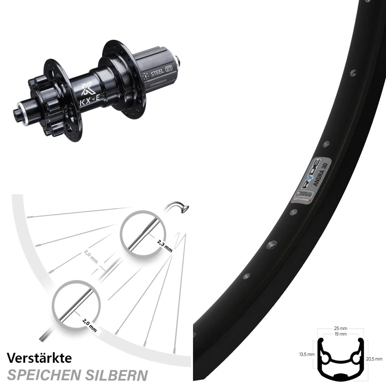 26 Zoll Hinterrad KX-E Nabe 11-fach Ryde Andra 30 Disc mit verstärkten Speichen