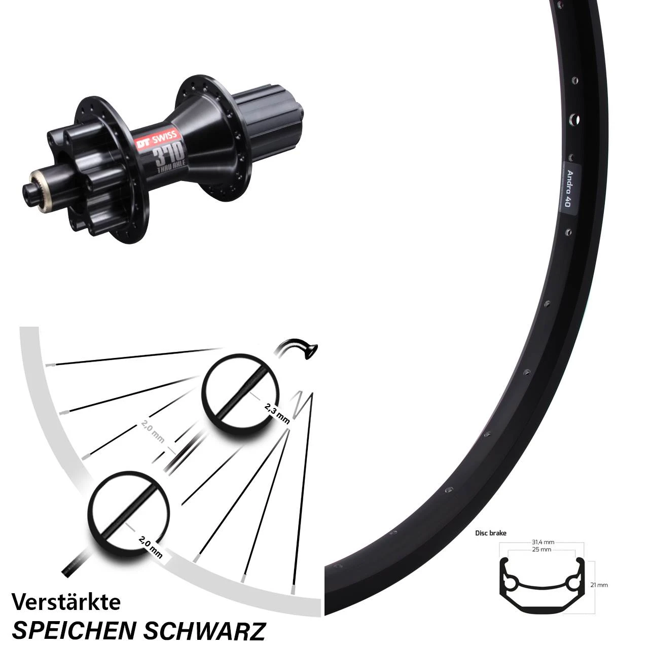 - Nabe: DT Swiss 370 Disc 6-Loch Shimano 5/135 schwarz