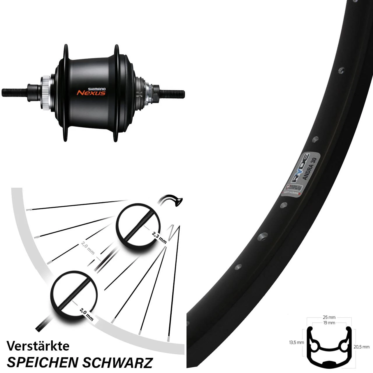 26 Zoll Ryde Andra 30 Disc Shimano SGC3001 7-Gang Hinterrad schwarz mit verstärkten Speichen