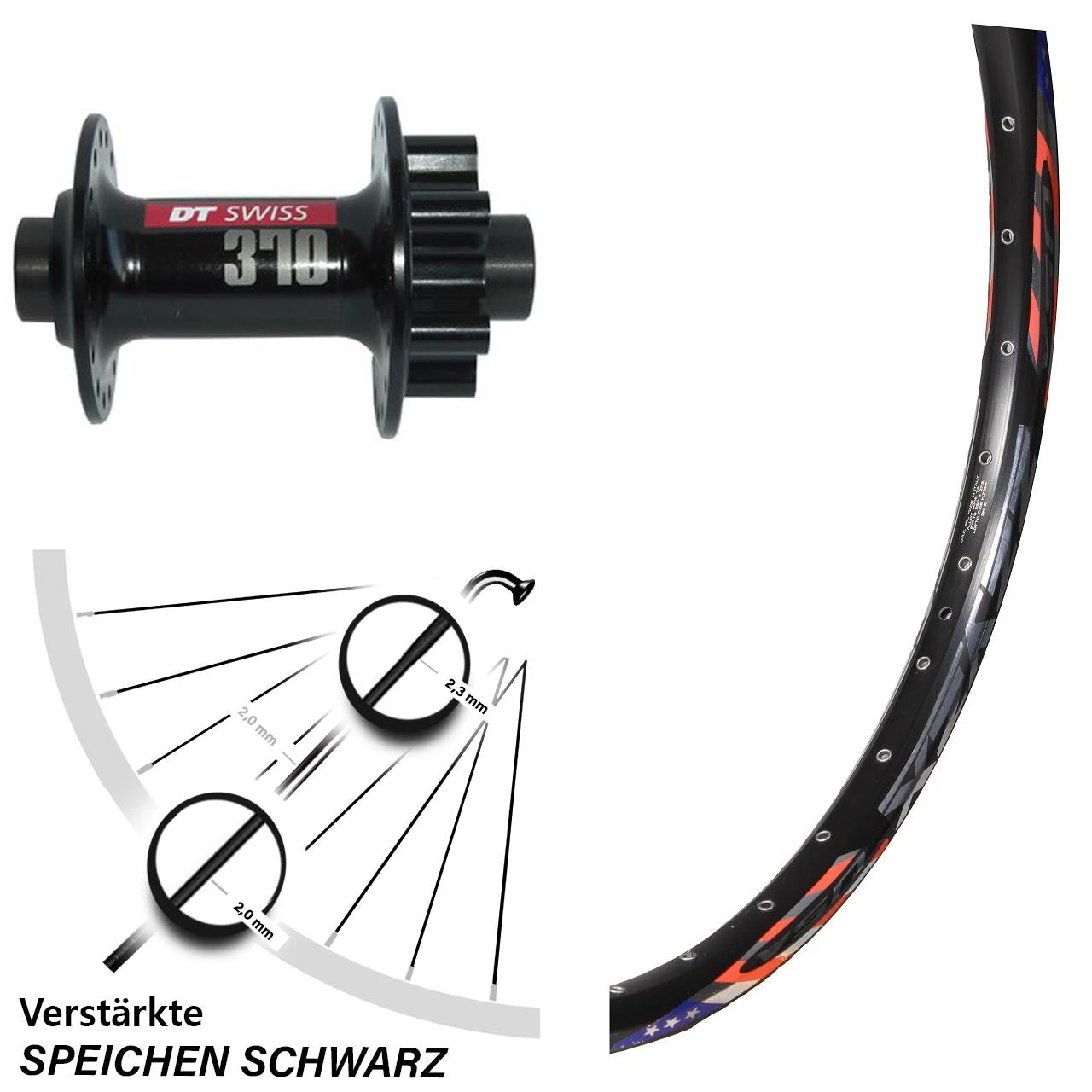 Produktbeschreibung 26 Zoll Vorderrad DRC ZZYZX 28-559 Steckachse 15×100 mm DT Swiss 370 6-Loch