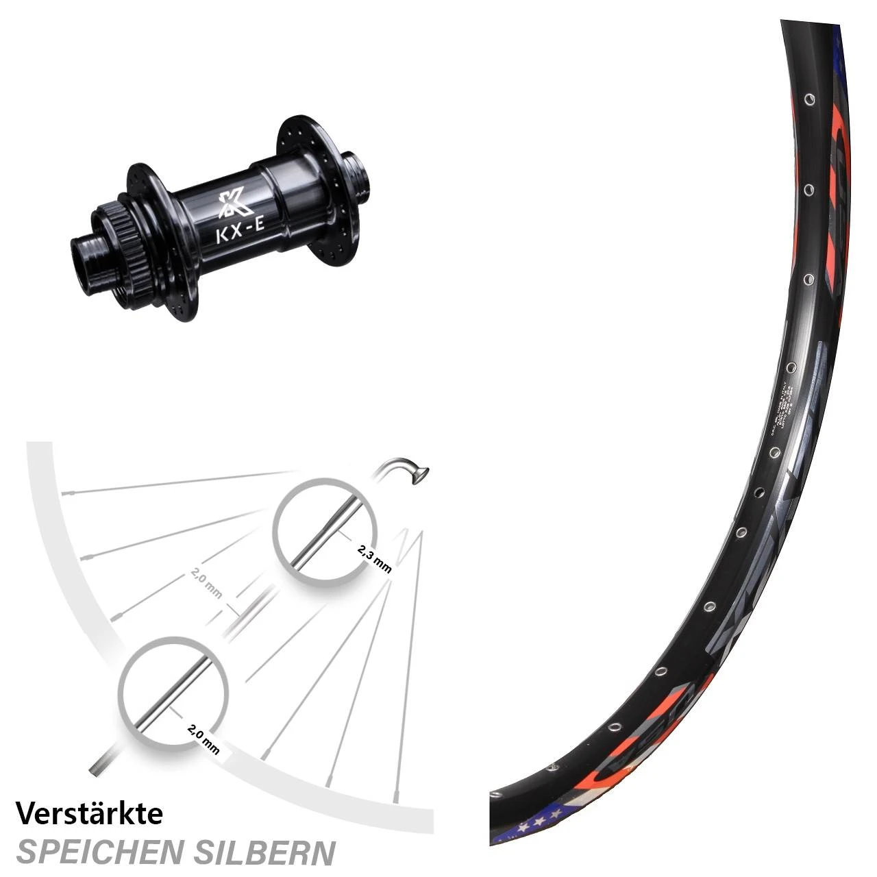 Produktbeschreibung 26 Zoll Vorderrad KX-E Nabe Centerlock 15×100 mm schwarz DRC 28-559 ETRTO