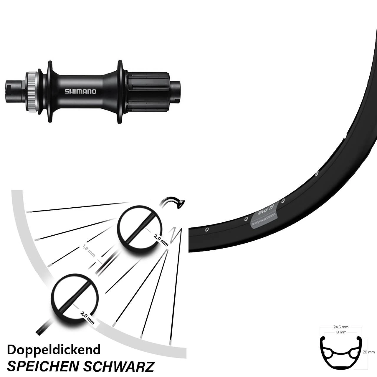Technische Daten Hinterrad Ryde Rival 19 Disc schwarz und Nabe Shimano FH-MT400 schwarz