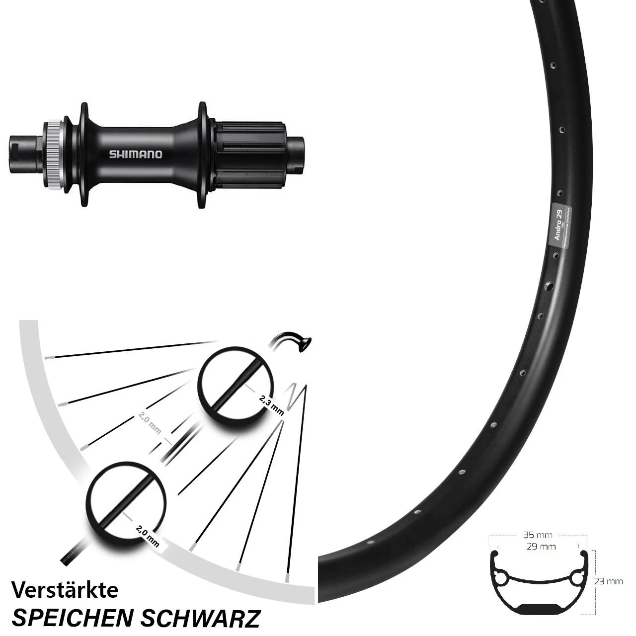 Technische Daten Hinterrad Ryde Andra 29 Disc schwarz und Nabe Shimano FH-MT400 schwarz