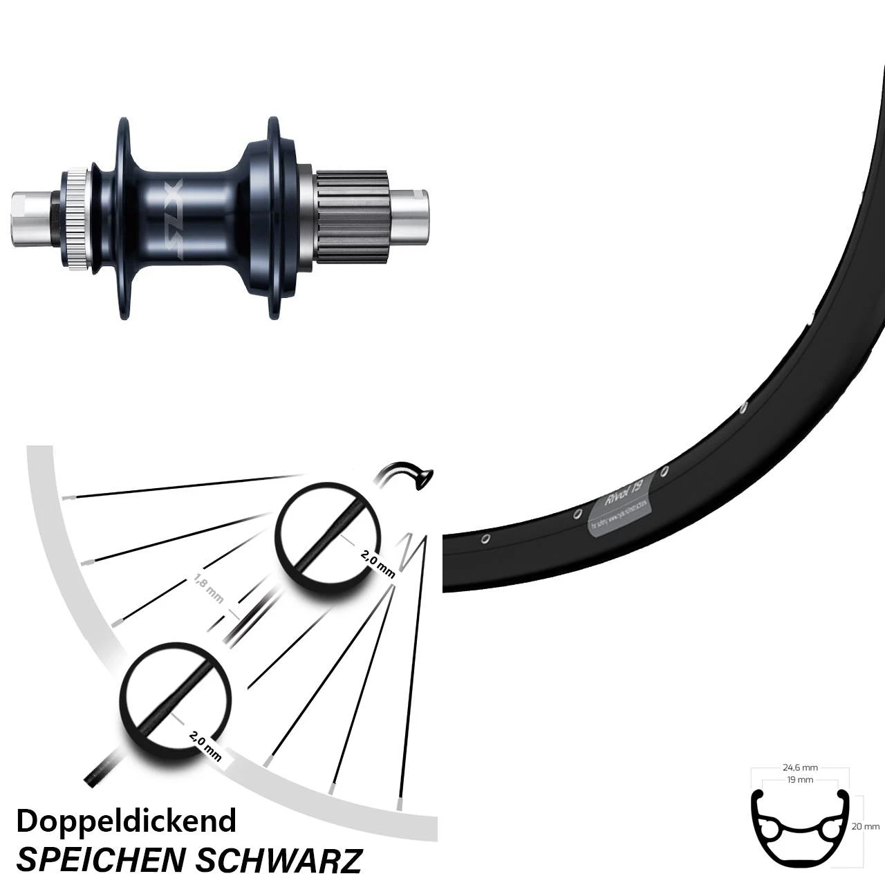 Technische Daten Hinterrad Ryde Rival 19 Disc schwarz und Nabe Shimano SLX FH-M7110 schwarz