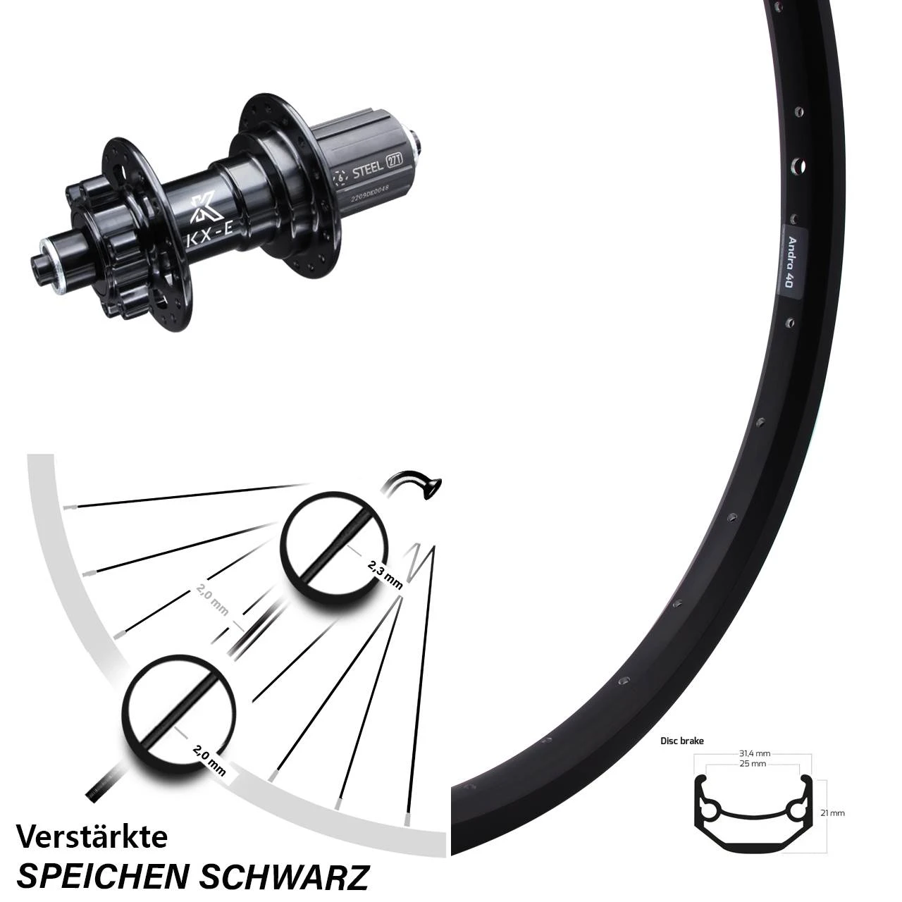 - Nabe: KX-E Hinterradnabe 6-Loch 5/135 mm Shimano 11-fach schwarz