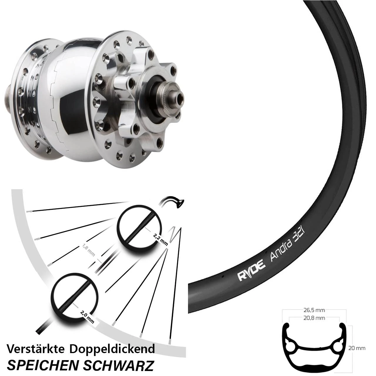 Produktbeschreibung 28-29 Zoll Vorderrad Son 28 Nabendynamo Ryde Andra 321