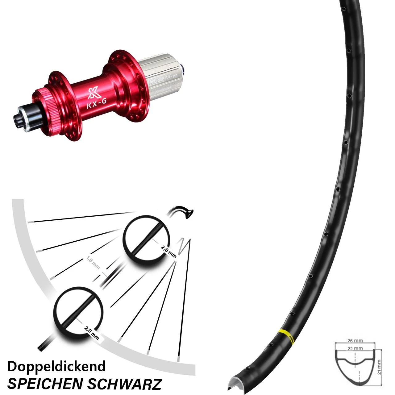 28 Zoll Hinterrad KX-G Hinterradnabe 5×135 mm rot Shimano 11-fach Mavic A 1022 mit Doppeldickendspeichen