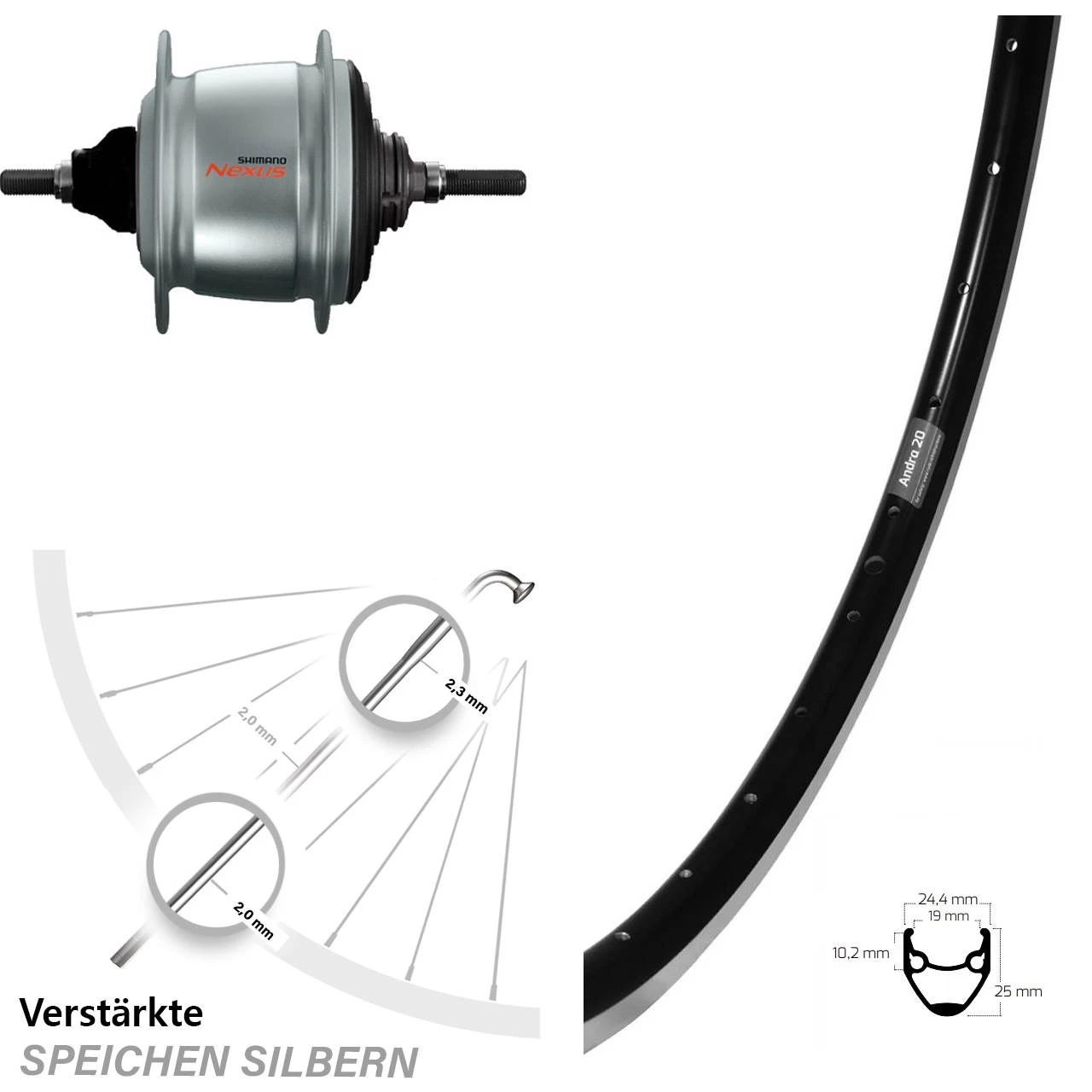 Produktbeschreibung 28 Zoll Hinterrad Shimano Nexus 8-Gang Ryde Andra 20