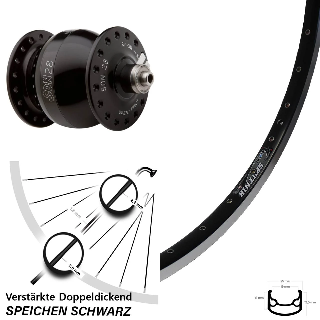 28 Zoll Vorderrad Fahrrad Ryde Sputnik Schwarz Son Nabendynamo