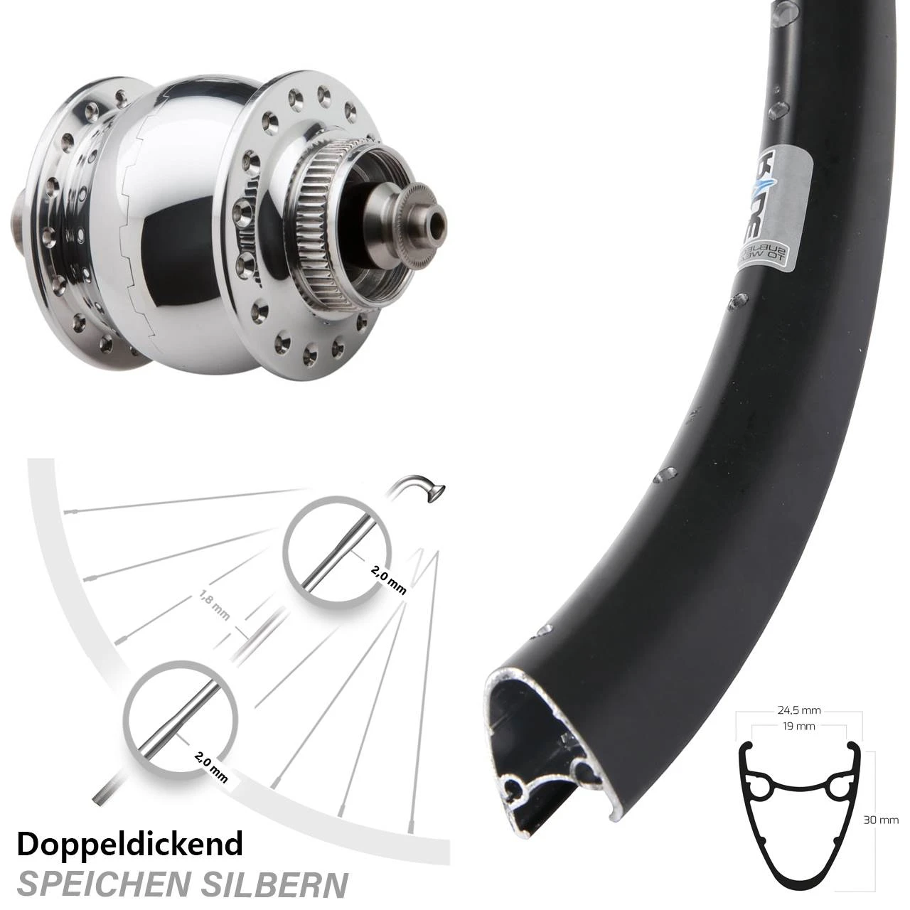 28 Zoll Vorderrad Ryde Dutch 19 SON Delux Disc Centerlock Hohlachse Silbern Poliert