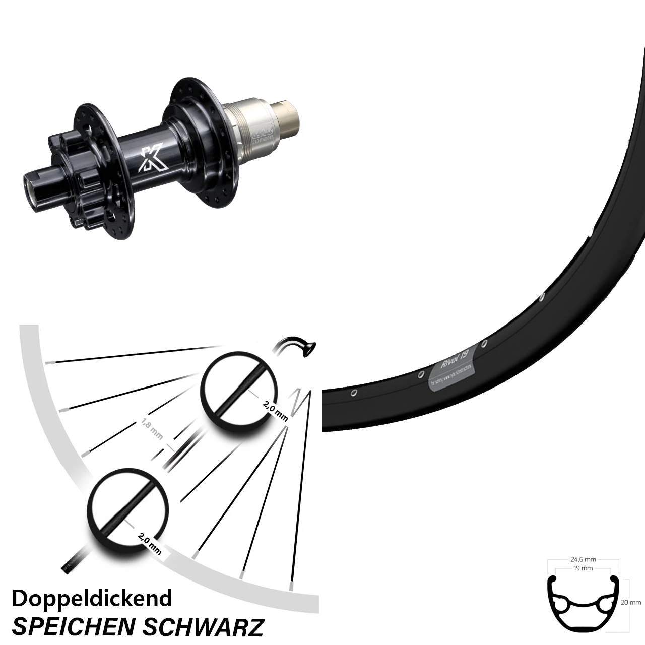 Technische Daten Hinterrad Ryde Rival 19 Disc schwarz und Nabe KX-M Hinterradnabe 12/142 6-Loch SRAM XD