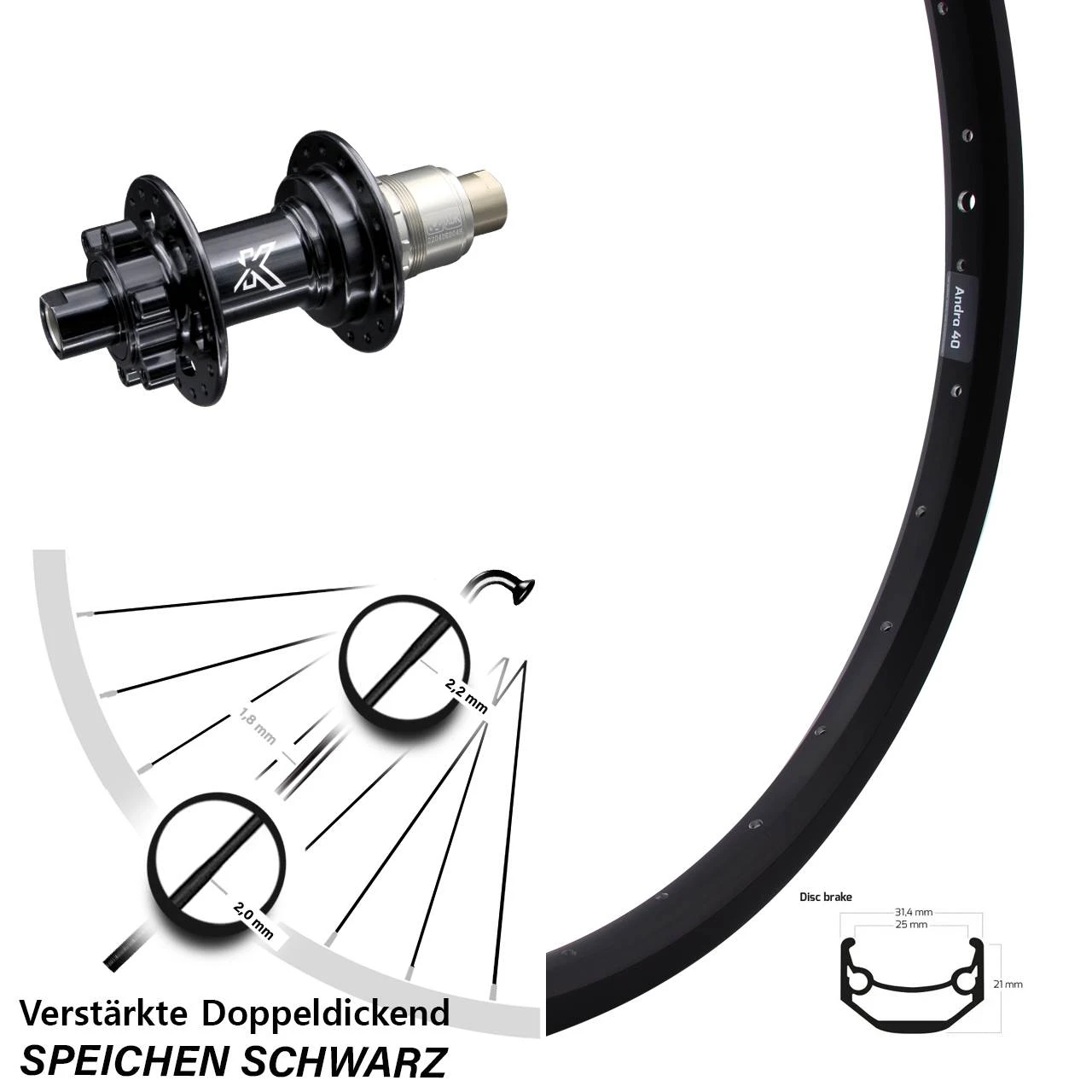 Produktbeschreibung 29 Zoll Hinterrad KX-M Nabe 12×142 mm Steckachse Ryde Andra 40 Disc