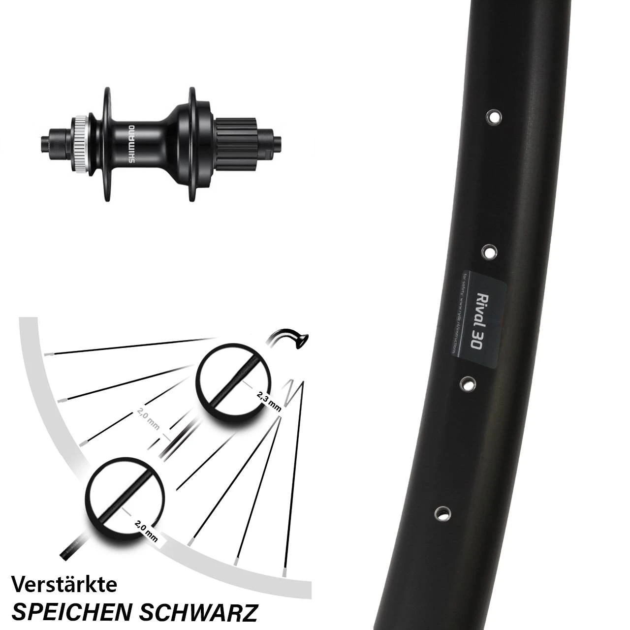 Technische Daten Hinterrad Ryde Rival 30 Disc schwarz und Nabe Shimano FH-MT500 schwarz