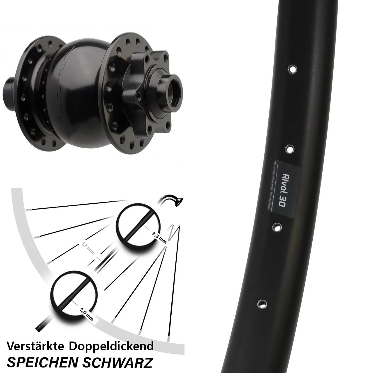 - Vorderrad 29 Zoll, 29+ Zoll Ryde Rival 30 Disc schwarz mit Nabendynamo SON 28-15 schwarz