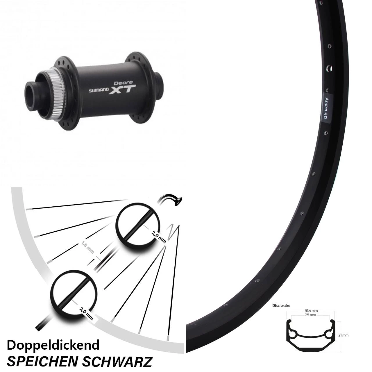 - 29 Zoll Vorderrad Ryde Andra 40 Disc Shimano XT HB-M778 für Steckachse
