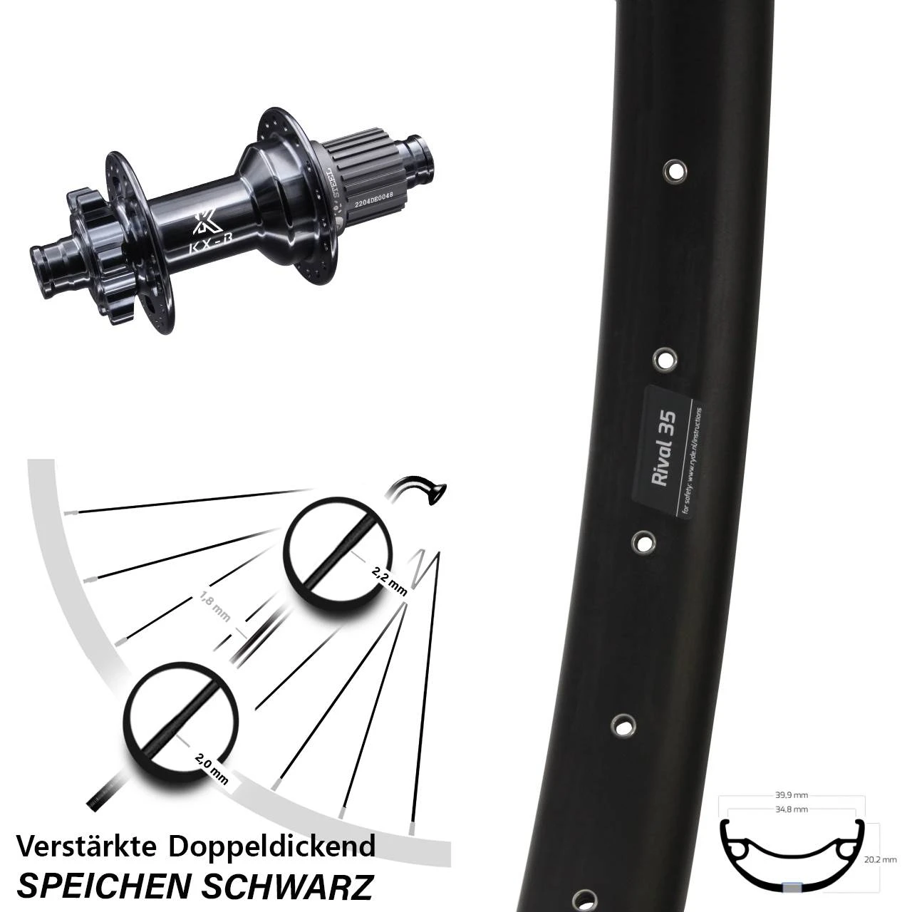Technische Daten Hinterrad Ryde Rival 35 Disc schwarz und Nabe KX-B Boost Hinterradnabe 12/148 6-Loch Stahl Micro Spline
