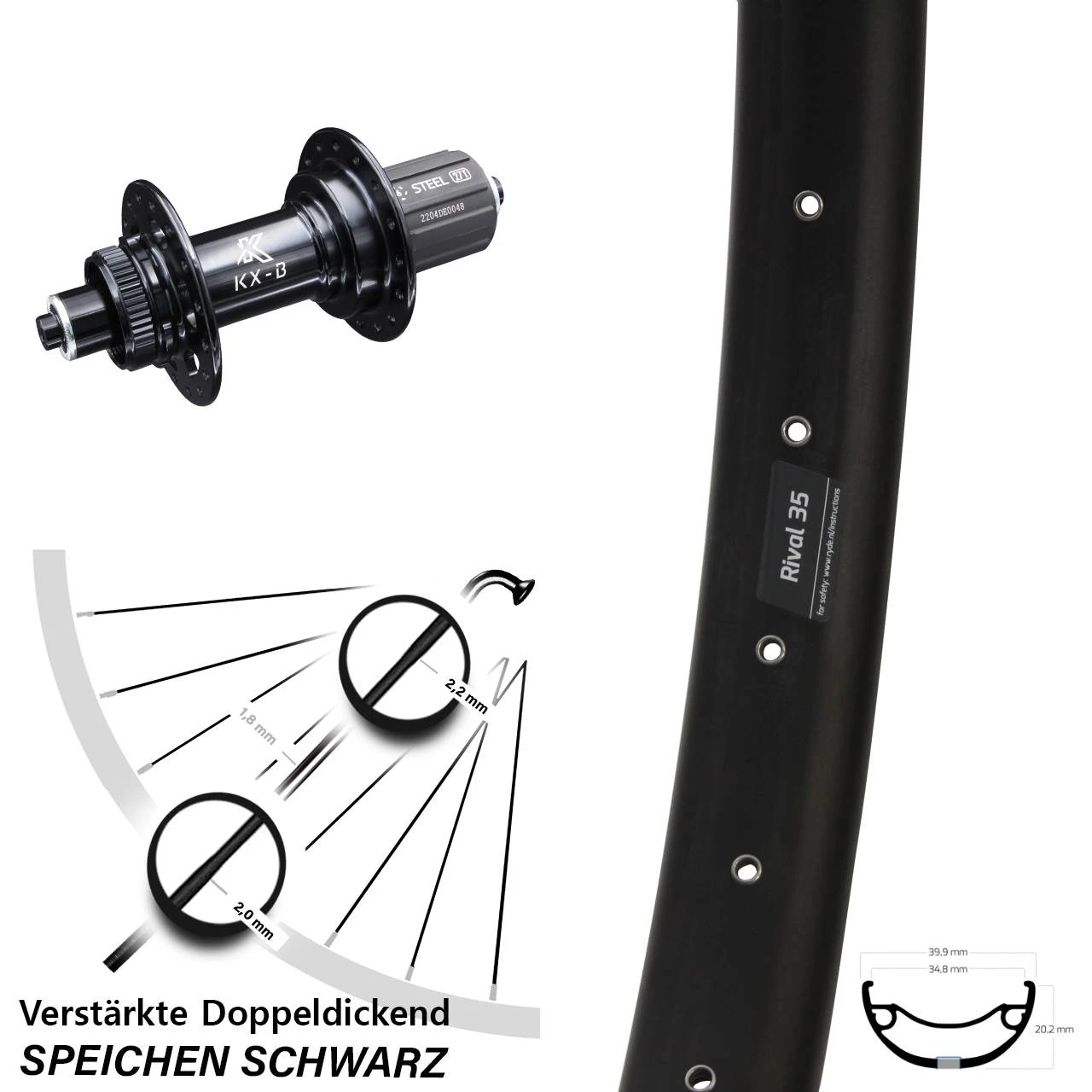 Technische Daten Hinterrad Ryde Rival 35 Disc schwarz und Nabe KX-B Boost Hinterradnabe 5/141 Centerlock Stahl Shimano 11-fach