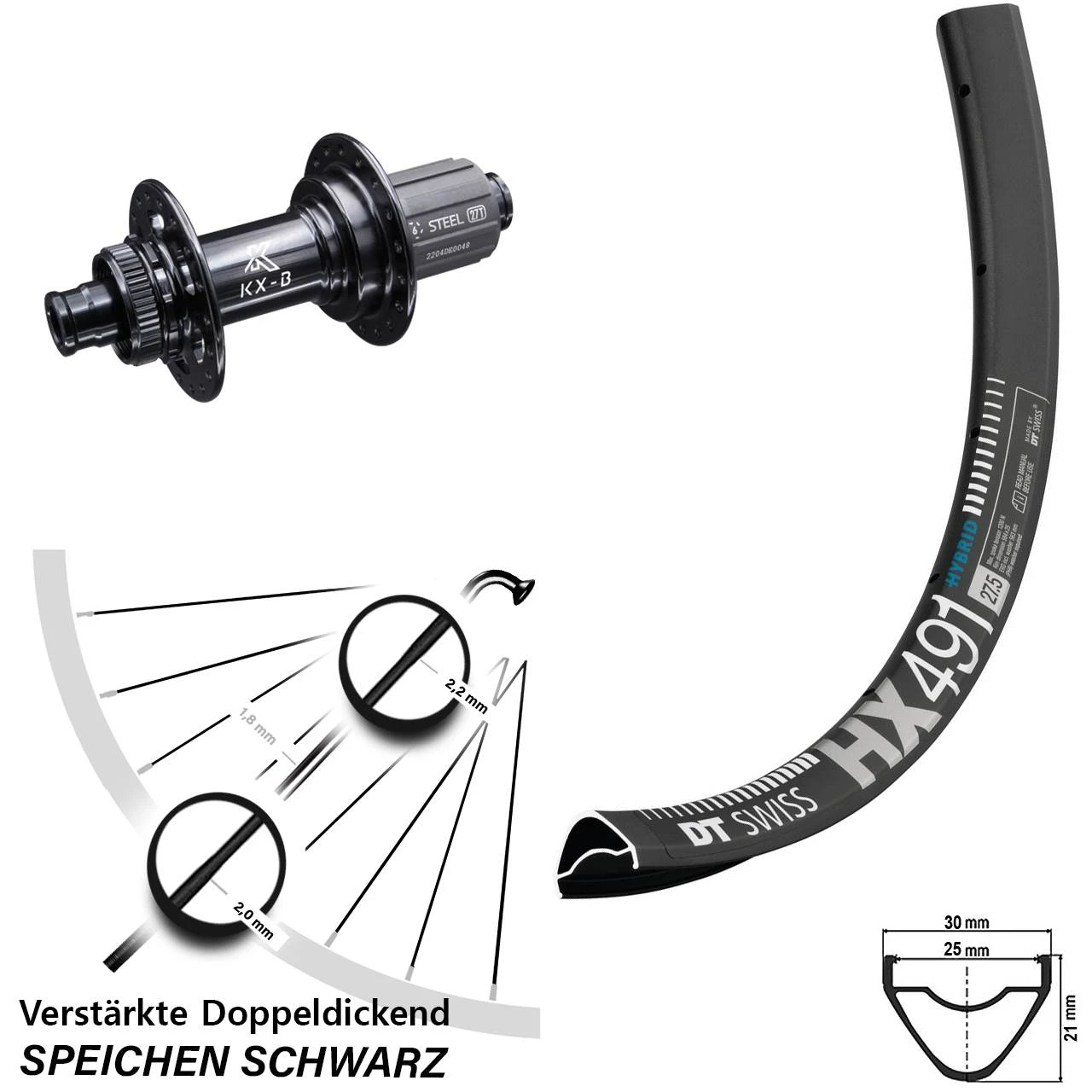 - 27,5 Zoll Hinterrad KX-B 12×148 mm Boost Centerlock DT Swiss HX 491 Steckachse