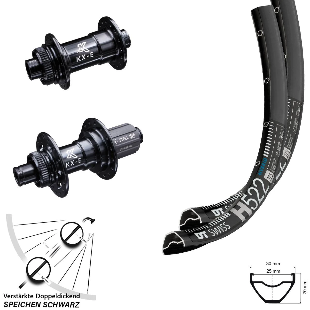 29 Zoll DT Swiss H 522 Laufradsatz verstärkt KX-E Nabe 11-fach Steckachse