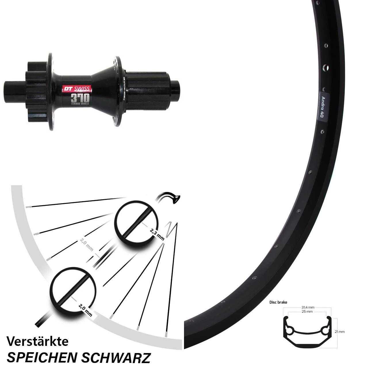 Technische Daten Hinterrad Ryde Andra 40 Disc schwarz und Nabe DT Swiss 370 Disc 6-Loch Shimano 12/142