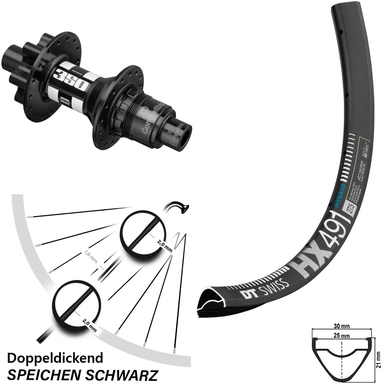 - Felge: DT Swiss HX 491 DB Disc schwarz