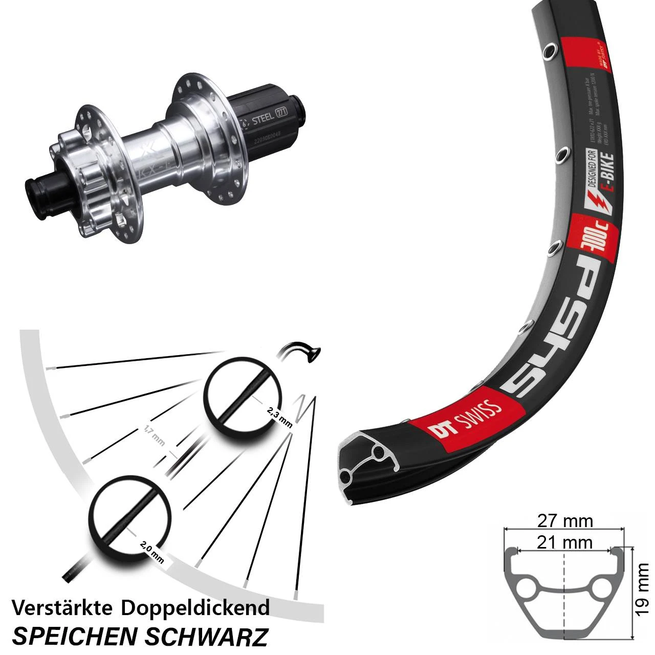 Dt-swiss DT Swiss 545 Hinteres Rad 26 Zoll E-Bike MTB KX-E Nabe Silbern 6 Kugellager