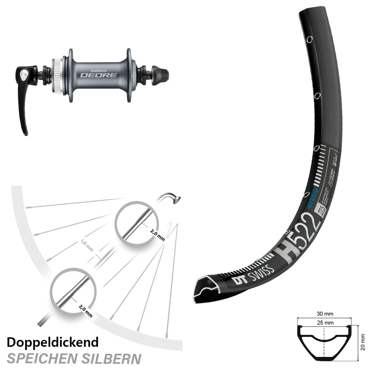 Technische Daten Vorderrad DT Swiss H 522 Disc schwarz mit Nabe Shimano HB-M615 silbern