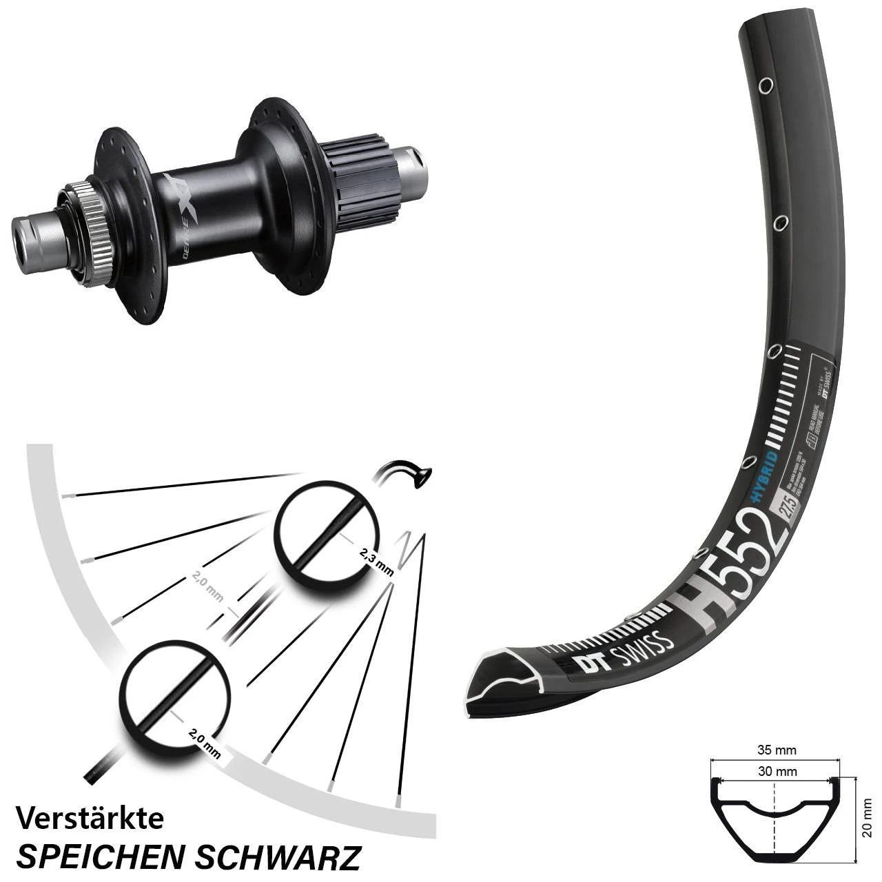 Technische Daten Hinterrad DT Swiss H 552 Disc schwarz und Nabe Shimano FH-M8110-B schwarz