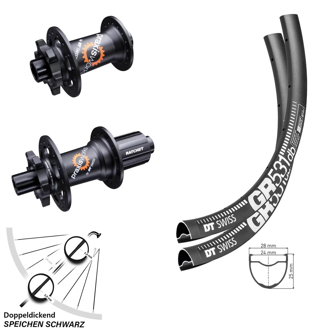 Laufradsatz GR 531 DT Swiss 350 Steckachse 100/142 mm 11-fach mit Doppeldickendspeichen