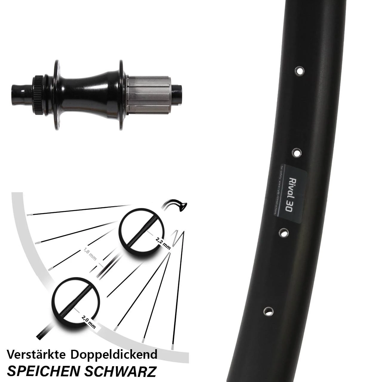 Technische Daten Hinterrad Ryde Rival 30 Disc schwarz und Nabe Formula CL-148S Boost schwarz