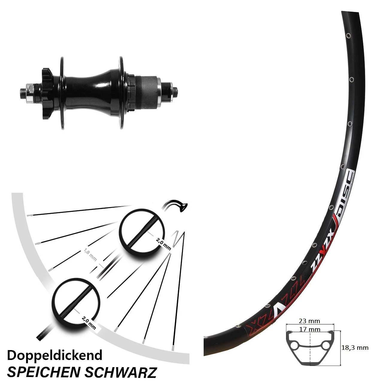 Technische Daten Hinterrad Mach 1 ZZYZX Disc und Nabe Formula DC-L363Q SRAM XD schwarz