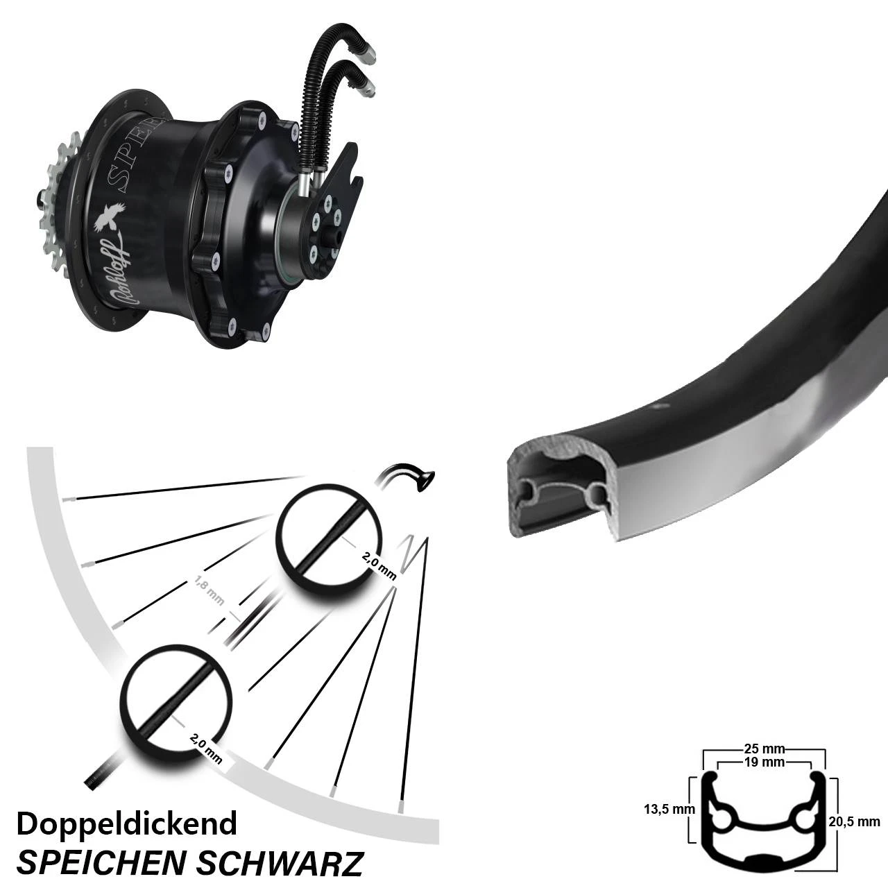 Technische Daten Hinterrad Ryde Andra 30 Felgenbremse schwarz und Nabe Rohloff Speedhub 500/14 CC OEM2 schwarz