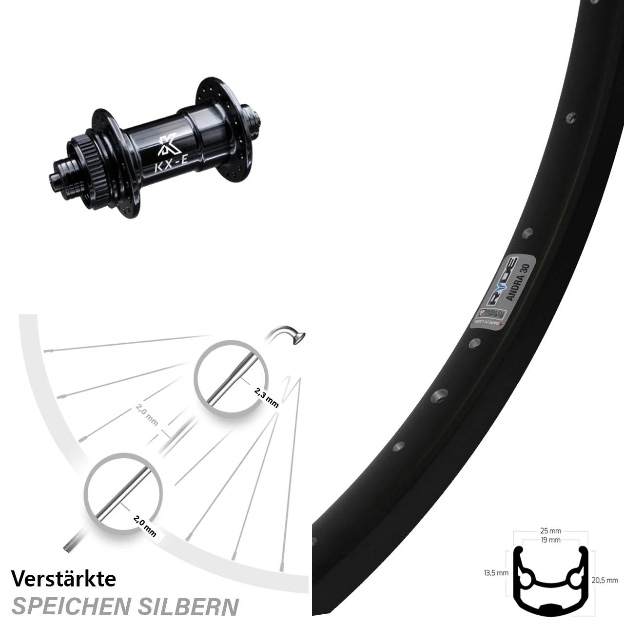 Produktbeschreibung KX-E Nabe Centerlock schwarz Ryde Andra 30 Disc Vorderrad 28-29 Zoll für Schnellspanner
