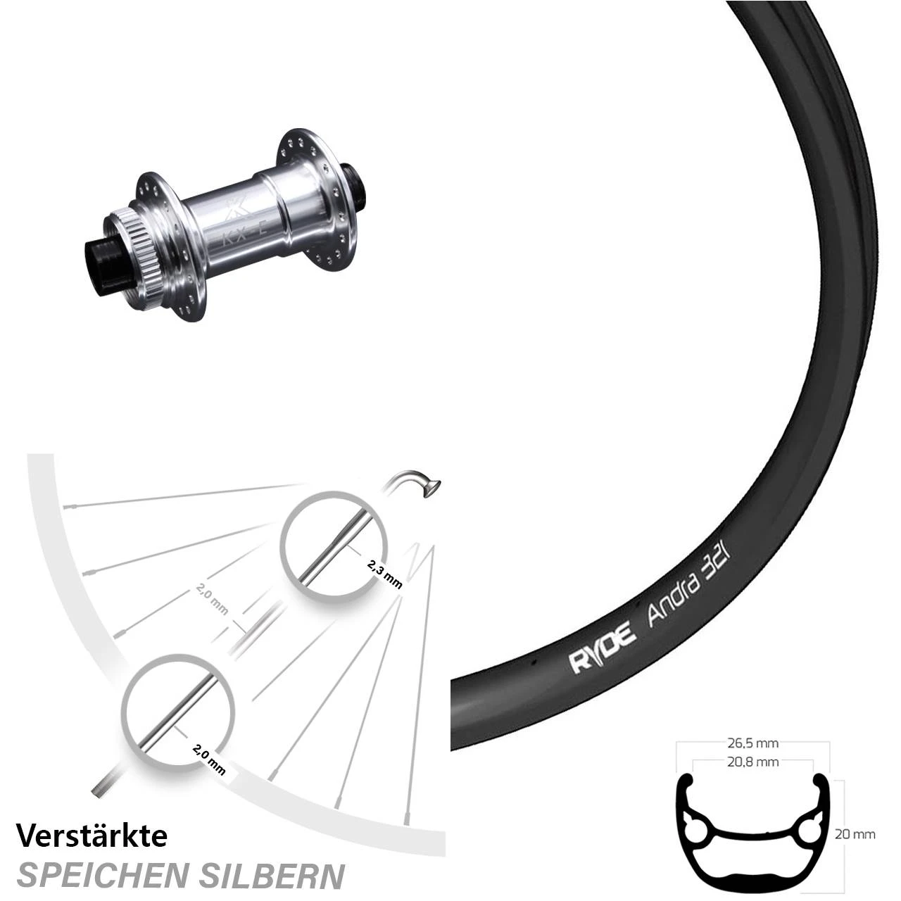 Produktbeschreibung KX-E Nabe silbern eloxiert Ryde Andra 321 Vorderrad 28-29 Zoll für Steckachse