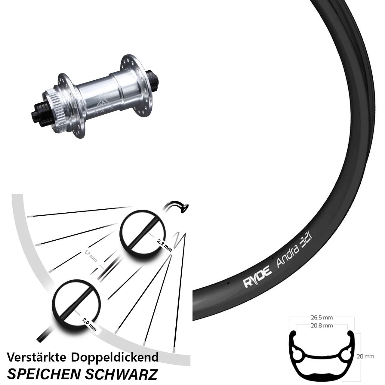 Technische Daten Vorderrad Ryde Andra 321 Disc schwarz mit Nabe KX-E Vorderradnabe Centerlock 5/100 silbern