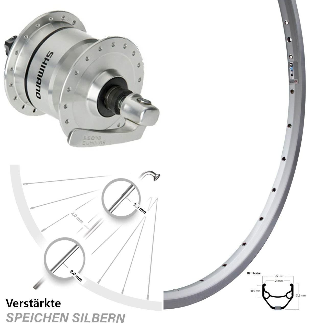 - Nabendynamo: Shimano DH-3N72 silbern – besonders leichtläufig