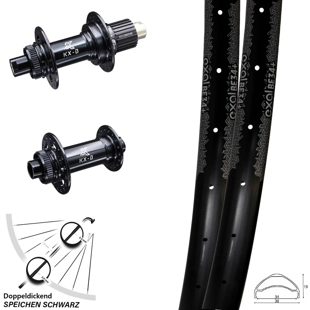 leichter 29+ Zoll MTB Laufradsatz KX-B Boost Centerlock 12-fach Micro Spline Exal BE34+ mit Doppeldickendspeichen