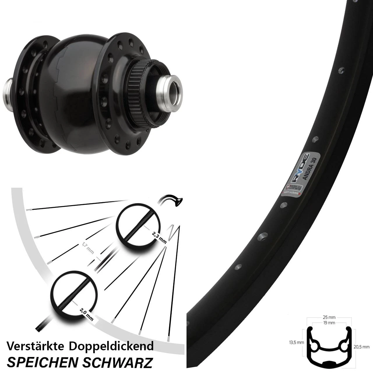 - Vorderrad 28 Zoll, 29 Zoll Ryde Andra 30 Disc schwarz mit Nabendynamo SON 28 schwarz