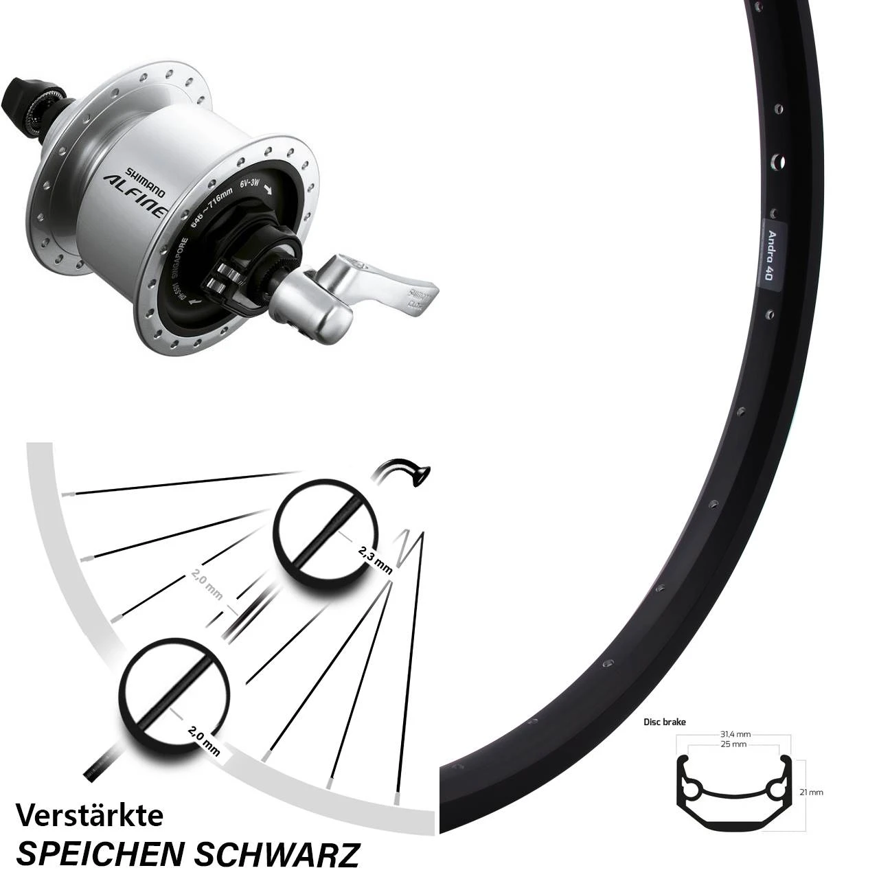 Nabendynamo Vorderrad Shimano Alfine DH-S501 Ryde Andra 40 Disc 28 Zoll mit verstärkten Speichen
