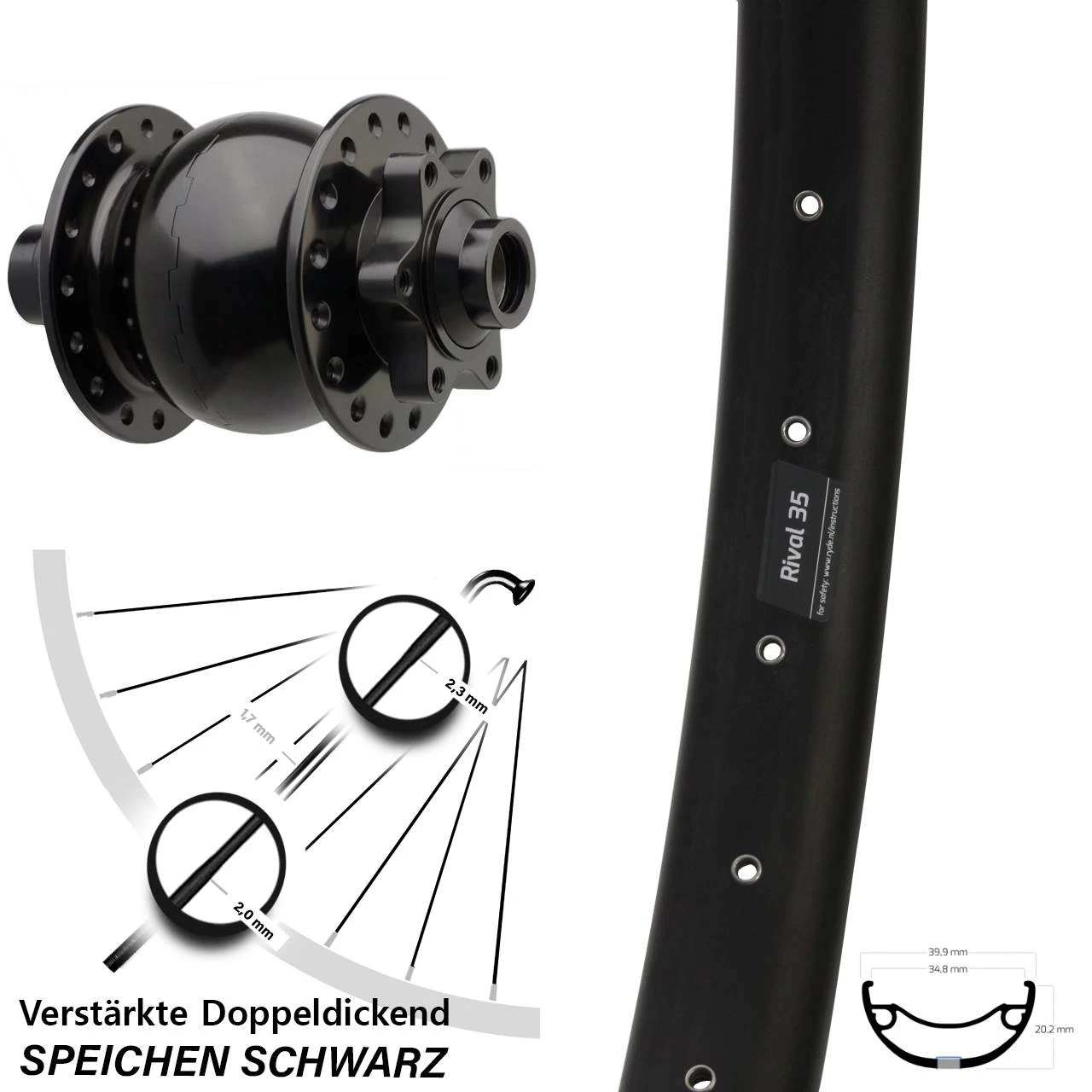 - Vorderrad 27,5 Zoll, 27,5+ Zoll Ryde Rival 35 Disc schwarz mit Nabendynamo SON 28-15 schwarz