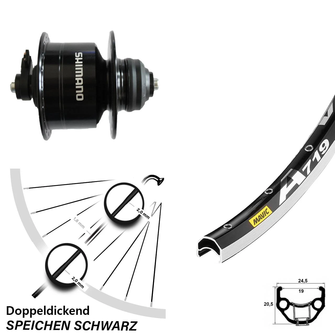 Technische Daten vorderes Laufrad Mavic A 719 schwarz & Nabendynamo Shimano DH-3D72 schwarz