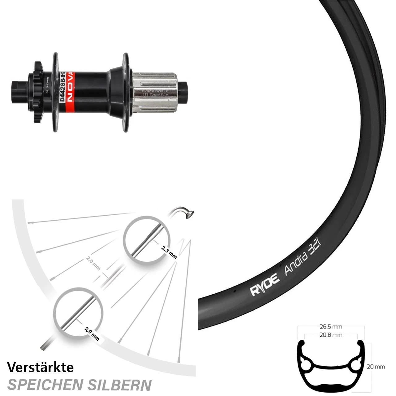 Technische Daten Hinterrad Ryde Andra 321 Disc schwarz und Nabe Novatec D442SB HG Boost