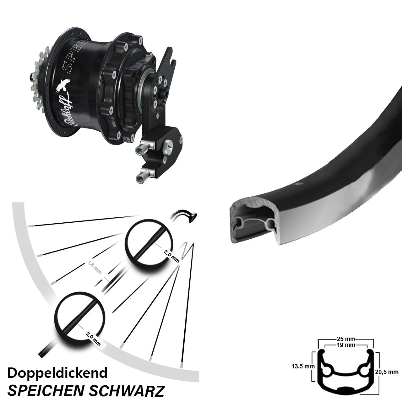 Technische Daten Hinterrad Ryde Andra 30 Felgenbremse schwarz und Nabe Rohloff Speedhub 500/14 CC DB OEM2 schwarz