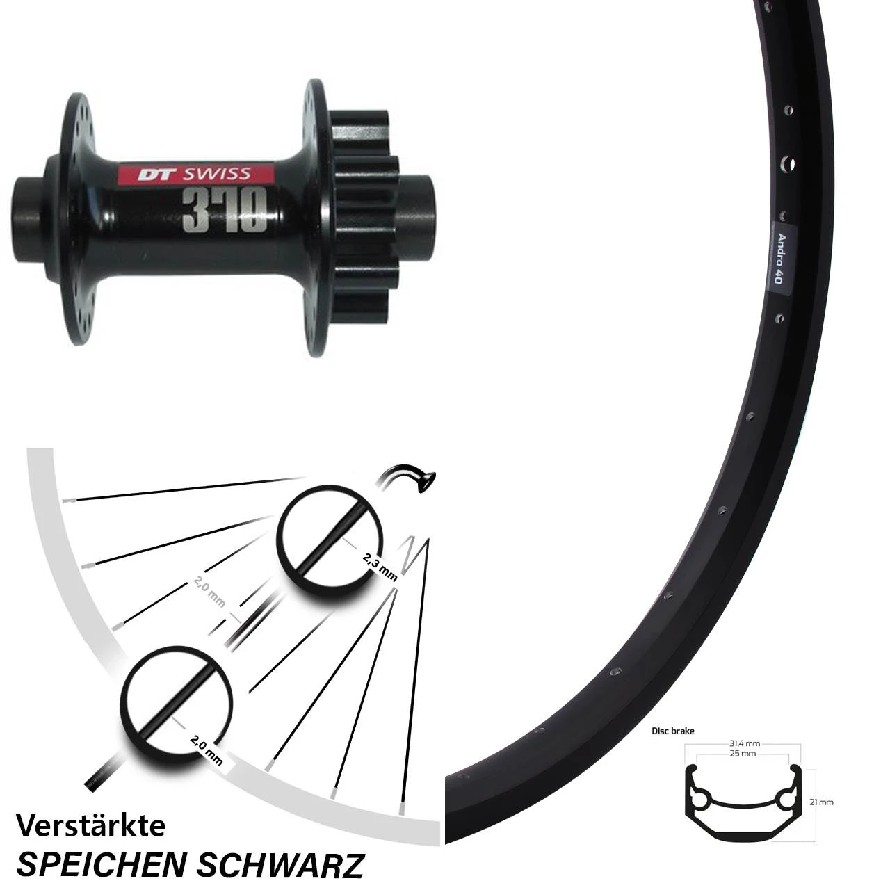 - Ryde Andra 40 Disc Vorderrad 28-29 Zoll mit DT Swiss 370 Nabe 15×100 mm Steckachse