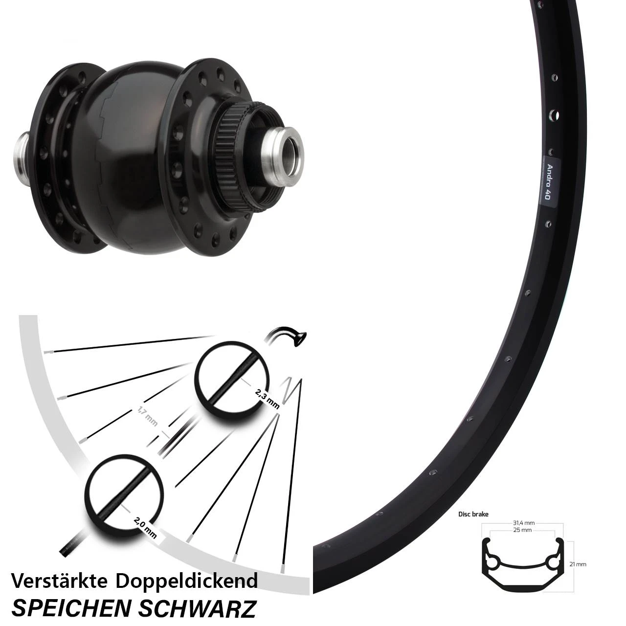 - Vorderrad 28 Zoll, 29 Zoll Ryde Andra 40 Disc schwarz mit Nabendynamo SON delux schwarz